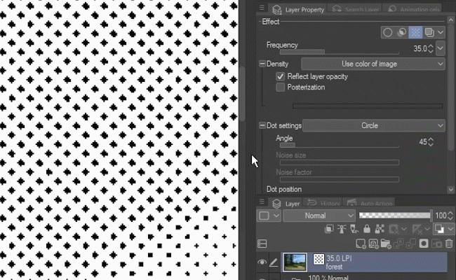 Vous pouvez modifier la taille et la forme des points, ainsi que l'angle sous lequel ils apparaissent. Il y a beaucoup de réglages, alors n'hésitez pas à jouer avec !