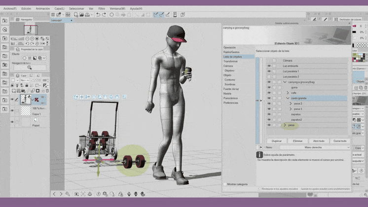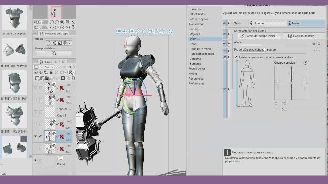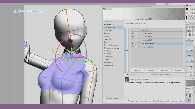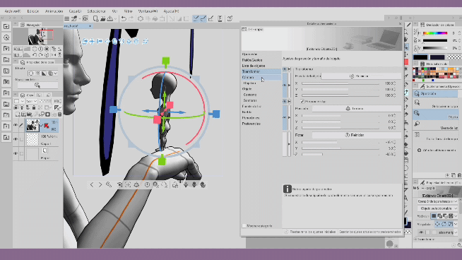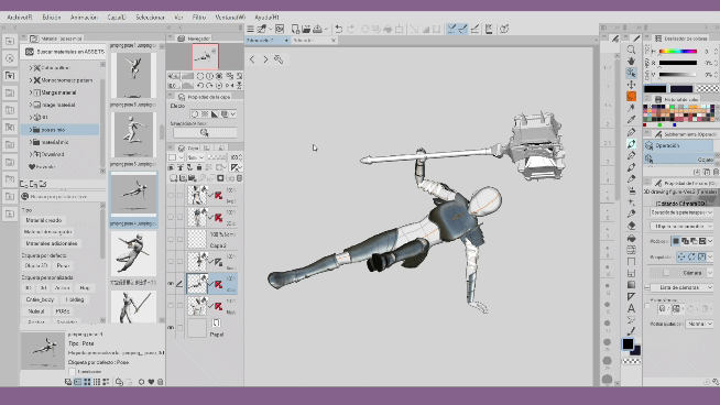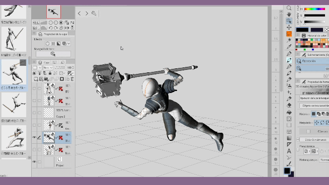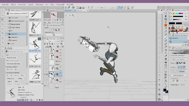 Les hiérarchies offertes par Clip Studio Paint depuis sa version 2.2 sont très utiles pour attacher des éléments supplémentaires à notre modèle 3D, grâce à des articulations spécifiques qui nous permettent d'organiser et de maintenir une coordination des mouvements. Les hiérarchies nous aident à gagner du temps, par exemple, nous n'avons plus à nous soucier d'ajuster chaque objet 3D chaque fois que nous ajoutons une pose. Avec les hiérarchies, il suffit d'ajuster quelques petits détails des objets et nous aurons des milliers de poses. Cela nous permet de travailler efficacement pour créer nos personnages. Comme vous pouvez le voir, les possibilités sont infinies, je vous invite à appliquer ce que vous avez appris dans ce tutoriel et à regarder la vidéo, si nécessaire, merci de votre attention. À la prochaine.