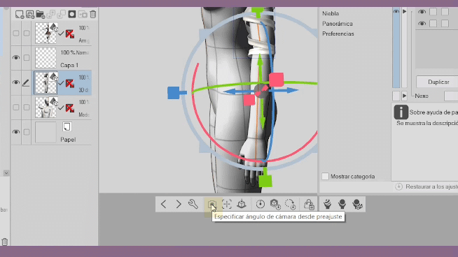 Lorsque vous ajusterez un objet 3D au modèle, pour éviter de tourner en rond, nous allons nous épargner beaucoup de travail avec l'outil « Spécifier l'angle de caméra à partir du préréglage », qui ouvrira plusieurs plans spécifiques qui vous aideront à avoir un meilleur contrôle et une meilleure gestion du modèle 3D pour ajuster vos éléments.