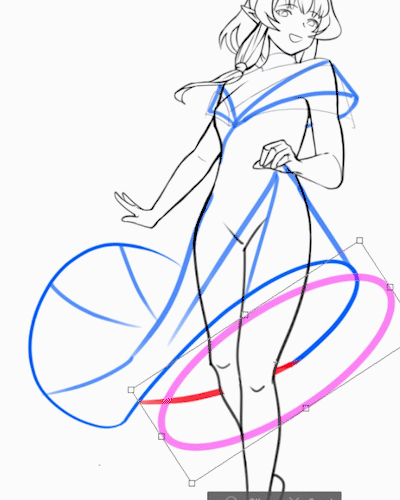 Nous pouvons commencer par dessiner un cercle sous la robe comme guide.