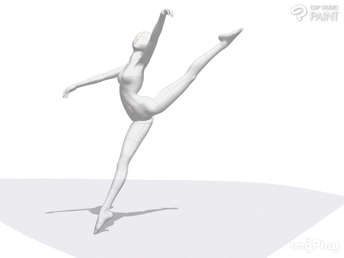 Comme nous, artistes, le savons, le dynamisme fait référence au sens de l'énergie, du mouvement et du changement que votre personnage transmet. La capacité de l'artiste à dessiner librement son personnage avec une bonne posture dynamique donne aux vues un sentiment de réalisme, et l'utilisation régulière du modèle 3D aide les artistes à développer leurs capacités dynamiques. De plus, il offre aux artistes une disponibilité illimitée de poses dynamiques, comme par exemple la pose ci-dessous du personnage féminin en train de danser.