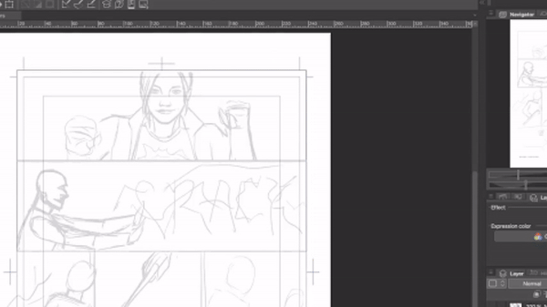 Je commence par un croquis. Je dessine mes bandes dessinées au format traditionnel, donc je pense à la page entière à la fois. Si vous travaillez sur un webtoon, vous pouvez prendre un chapitre comme exemple.Pour ce faire, ouvrez la fenêtre des ressources et faites glisser et déposer la silhouette depuis le menu de droite.