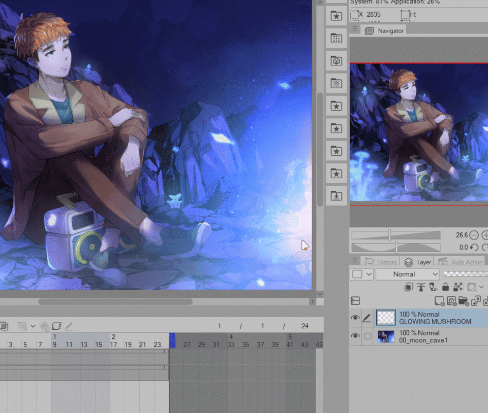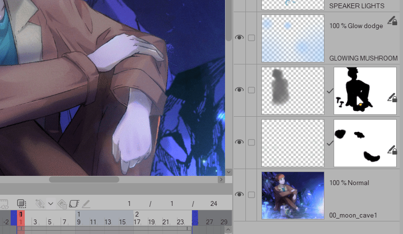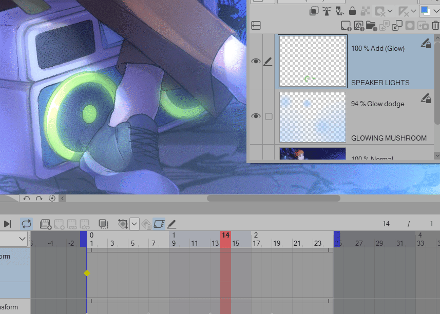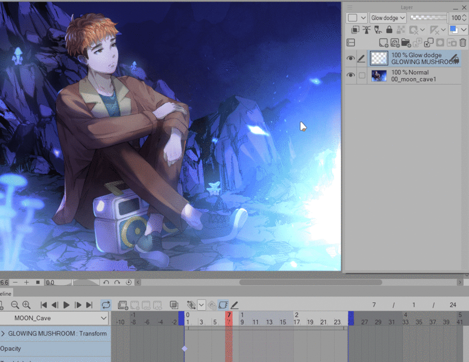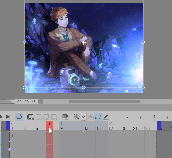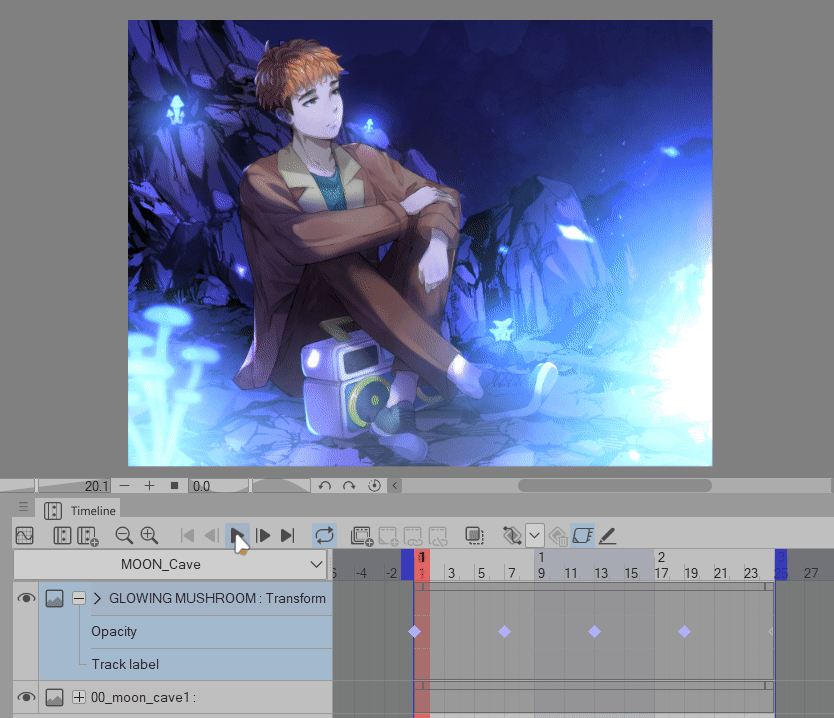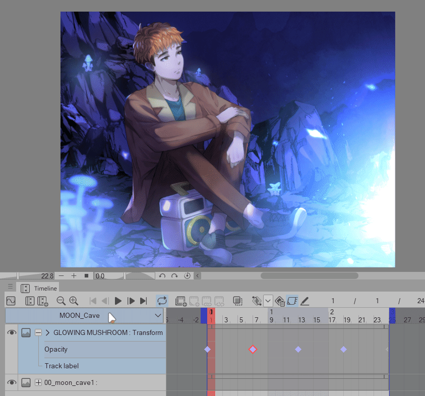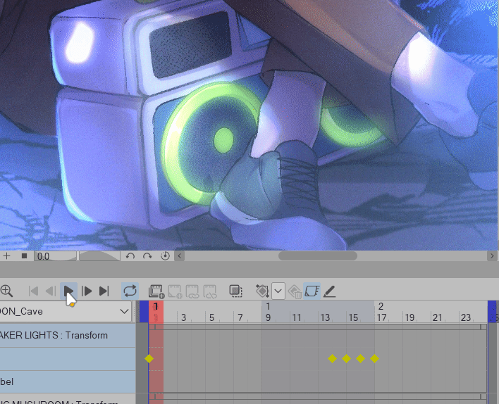 Maintenant, dans votre zone de LIGNE DE TEMPS, assurez-vous d'être sur le calque « Champignon lumineux », cliquez sur [Activer les images clés sur ce calque]