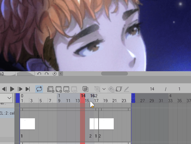 Vous pouvez répéter cela autant de fois que vous le souhaitez pour que votre personnage cligne des yeux, ou simplement sélectionner les images clés > Clic droit > COPIER > Déplacer vers l'image vide suivante > Clic droit > Coller