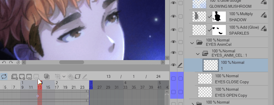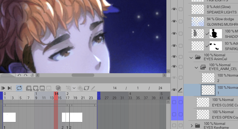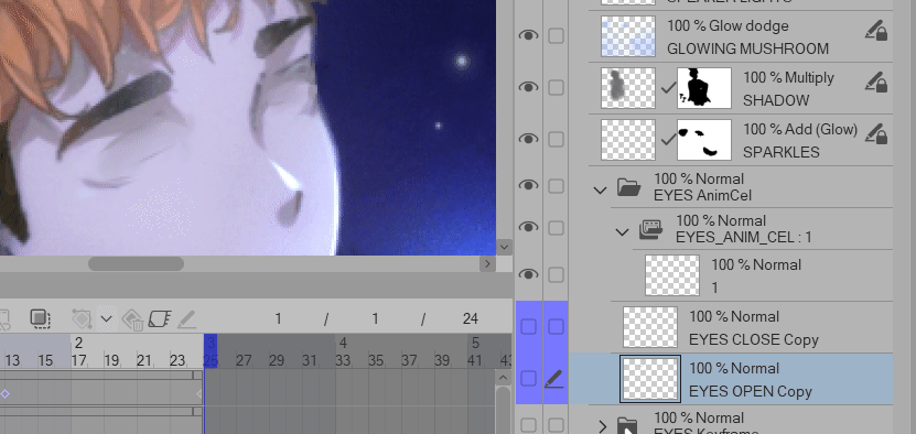Si vous voulez utiliser des images clés, il s'agit essentiellement de jouer avec l'Opacité des calques Yeux ouverts et Yeux fermés