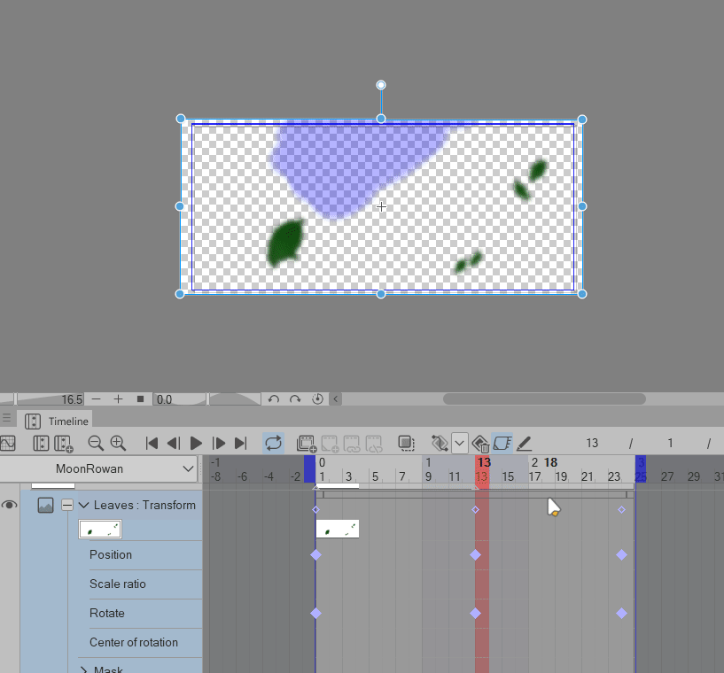 ASTUCE : Vous saurez que le calque est prêt pour l'animation par images clés lorsque vous ne pourrez plus peindre ou effacer quoi que ce soit sur le calque. De plus, « transformer » apparaît dans le nom du calque.