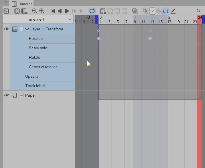⭐ Assurez-vous que les images clés aux images 1 et 24 ont les mêmes valeurs