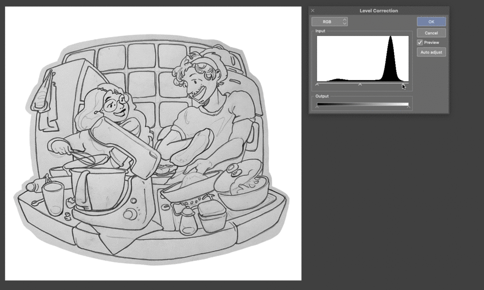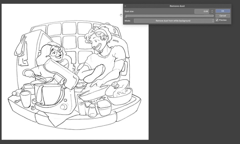 D'un autre côté, si votre croquis au crayon est quasiment finalisé, il y a quelques étapes que vous pouvez suivre pour le nettoyer et l'utiliser comme lineart.