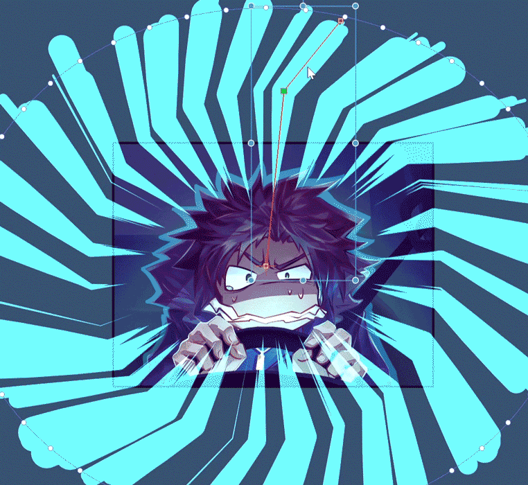 中心に付いている四角いハンドルをドラッグして、線の全体的な位置を回転します。