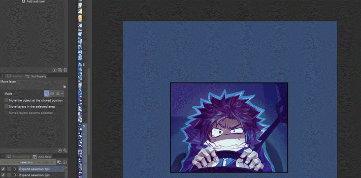 ゆがみツールのもう一つの用途は、レイヤープロパティパレットの境界線効果の代替として、コメディシーンのキャラクターの周りに境界線を作成することです。