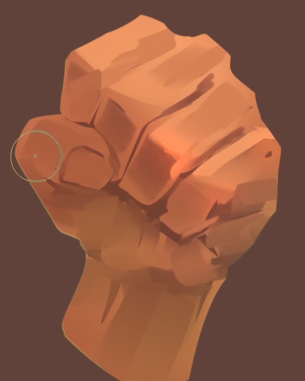 覆い焼き(発光)またはオーバーレイモードのブラシを赤みがかった色で選択して使用すると、副光源で照らされる領域の色や、強く照らされている部分に沿ったサブサーフェススキャタリングの領域の色を素早く定義するのに役立ちます。