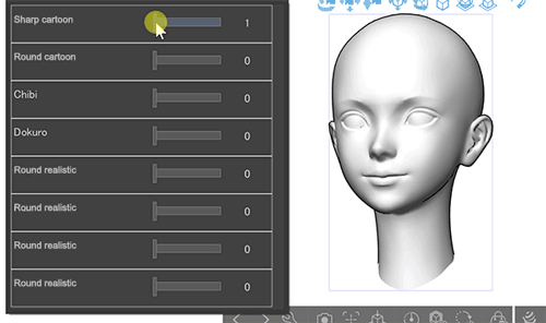 ▲頭部モデルのように、複数のシェイプキーが組み込まれた3Dモデルを読み込んだ例