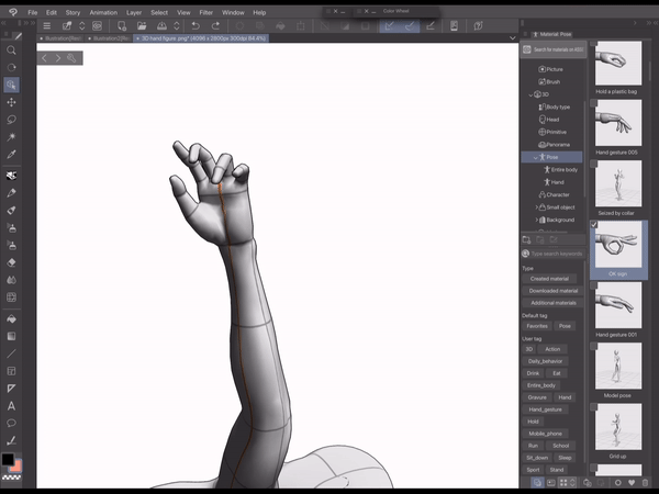 You can also drag in any hand pose you like from the pose section. To do it, simply drag in the hand pose onto the hand model.