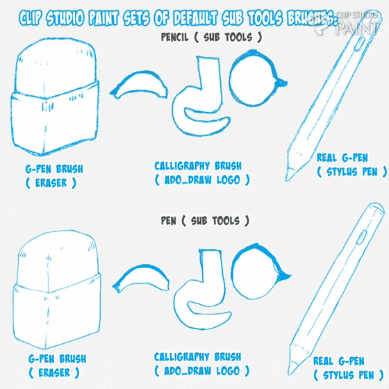 (ペンと鉛筆のサブ ツール)のいずれかを見つけるには、最初に CSP キャンバスを開きます。キャンバス内で [編集バー] のいずれかのサブ ツールをクリックすると、さまざまなアイコン オプションが設定されたページが表示されます。 [鉛筆とペンのサブツール] を使用できることがわかります。