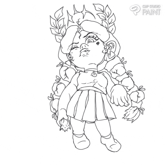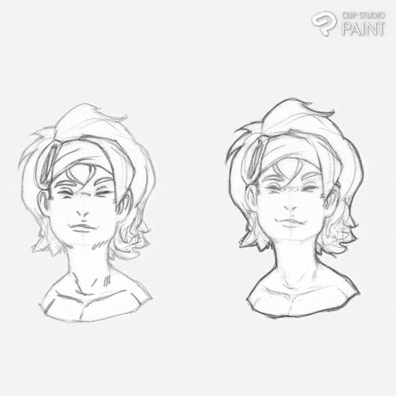 また、線画の太さが視聴者に光と位置をどのように伝えるかについて線について上で学んだことを利用して、[線画幅調整ツール] を使用してこのキャラクターの線にそれを実装し、表示されているキャラクターの外側の線を増やします。コンセプトキャラクターの光と影の領域。