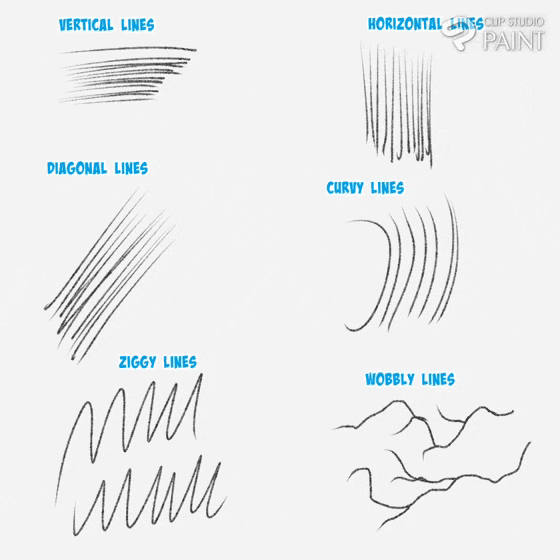 線画の作成方法を学ぶときは、最も基本的な要素である直線から始めます。ペンや鉛筆をさまざまな角度で持ち、さまざまな硬さでキャンバスに押し込む練習をして、重みによって作成する線の太さがどのように変化するかを確認し、最後にストロークを描きながら全方向に湾曲させてみてください。どの角度に向かって描くのが得意か。