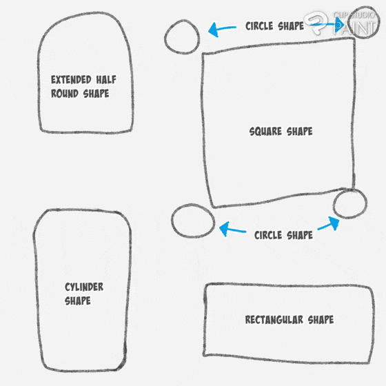 (以下に示すように、上記の基本的な形状を使用してオブジェクトの描画をガイドします)。
