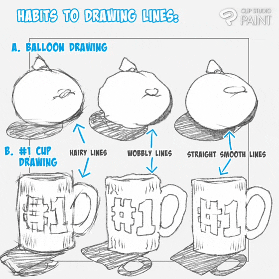 確かに、これらは線の描き方ですが、頻繁に線を練習して自信をつけることも非常に重要です。なぜなら、自分は線画を描けると信じていると、線画のストロークがよりまっすぐで安定する傾向があるからです。手がしっかりしていて、震えたり、ぐらついた線や断面線を作ったりする傾向がありませんが、これには人の考え方も重要な役割を果たしていると思います。