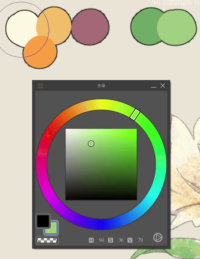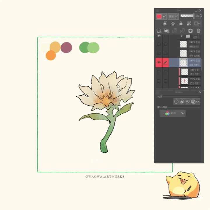 채색 과정에서 색상 선택은 레이어 효과의 영향을 받습니다.