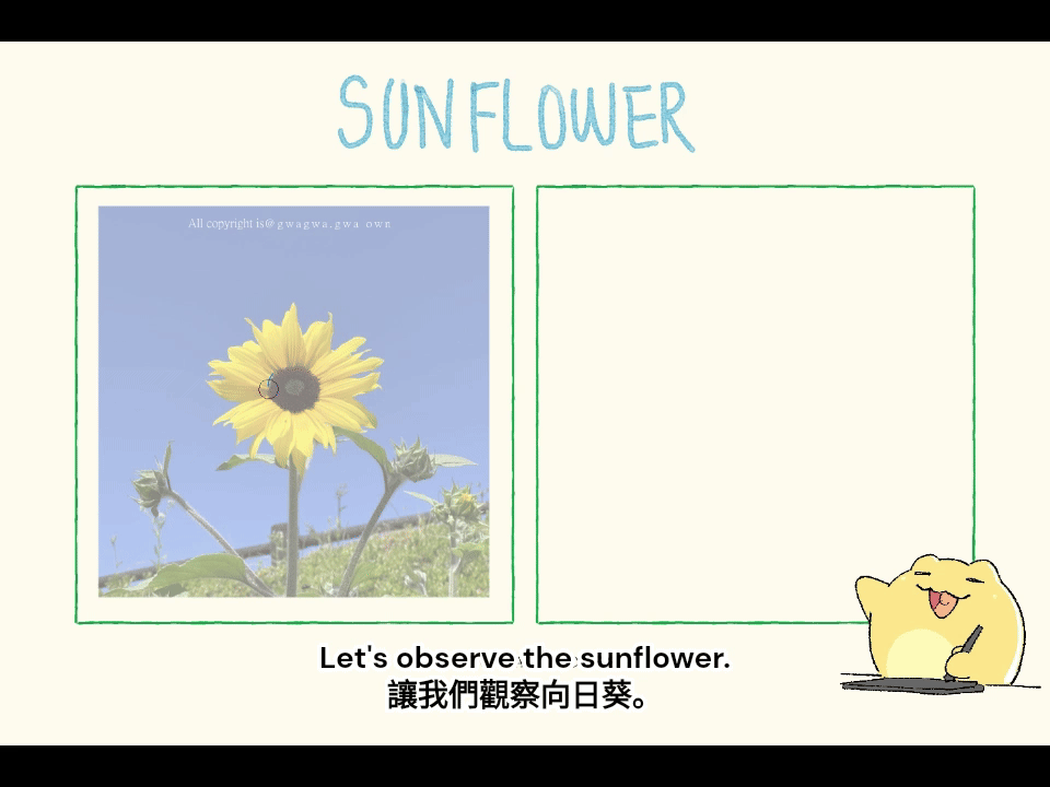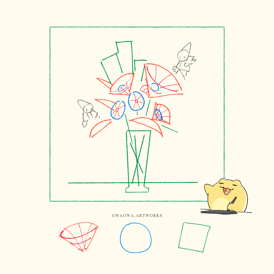 - I 직선을 사용하여 꽃의 윤곽을 그리며 눈앞에 있는 것을 빠르게 포착합니다.