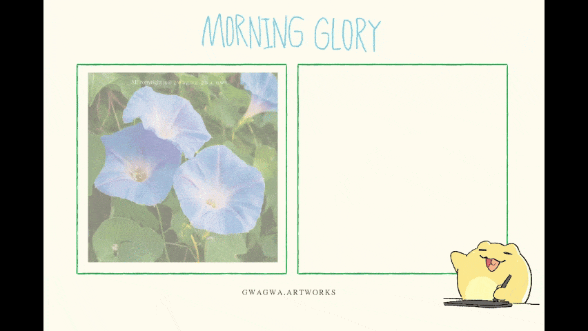 - 나팔꽃의 기본 모양은 오각형+별 모양이며, 옆에서 보면 작은 나팔 모양처럼 보입니다.
