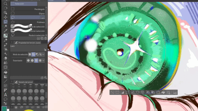 다양한 유형의 브러시를 사용하여 눈에 다양한 효과를 줄 수 있습니다. 예를 들어, 흐림 효과, 두껍거나 매우 가는 선, 또는 뚜렷한 선 등이 있습니다.