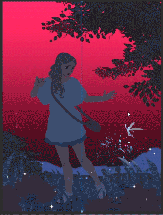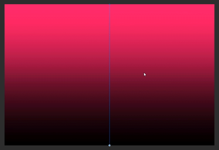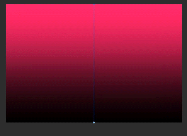 "오브젝트"로 설정된 [조작] 도구를 사용하는 동안 세로 파란색 선 하단의 작은 원을 클릭하고 길게 누릅니다. 왼쪽 또는 오른쪽으로 이동하면 그라데이션의 방향이 변경되고, 위 또는 아래로 이동하면 각 색상의 양이 조정됩니다.
