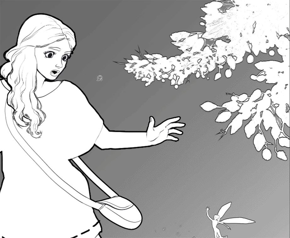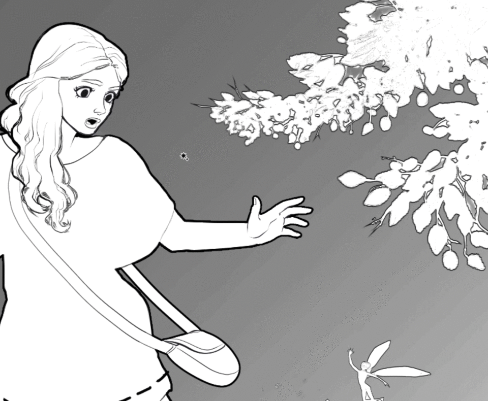 아래는 그라데이션을 작품에 적용하는 방법을 시연하기 위해 사용할 미완성 일러스트레이션입니다. 각 모양이나 영역에 자체 레이어를 부여했습니다(예: 소녀는 자체 레이어를 가지고 있으며, 꽃들도 마찬가지입니다). 제 생각에는 이렇게 하면 그라데이션을 적용하기가 더 쉽지만, 선택 도구나 원하는 방식으로 할 수 있습니다.