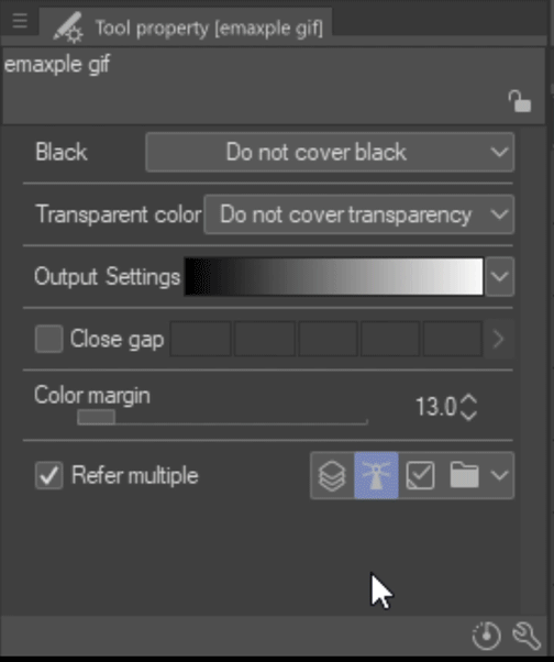 "검은색" 아래의 설정은 (1) 검은색 선이 있는 레이어에 도구를 사용하거나, (2) 이 도구에 사용할 레이어에 검은색을 넣는 경우에만 적용됩니다.