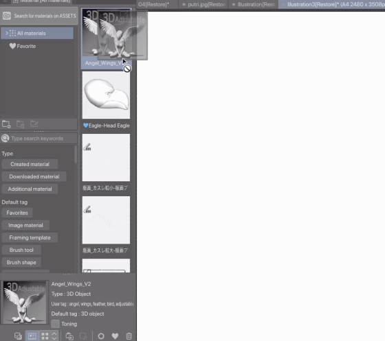 하지만 다시 말하지만, 클립스튜디오 페인트 에셋에서도 이미 유용한 소재들을 제공하고 있습니다. 복잡한 날개 해부학을 배우는 데 여전히 어려움이 있다면, 제가 구매한 소재는 다음과 같습니다.