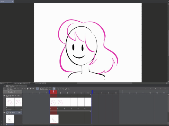 하나의 셀이 있는 새 애니메이션 폴더를 만들고 폴더 이름을 'Head'로 지정합니다. 여러 셀이 있는 폴더 이름을 'hair'로 지정합니다. 'Head' 폴더가 'hair' 폴더 아래에 있는지 확인하세요.