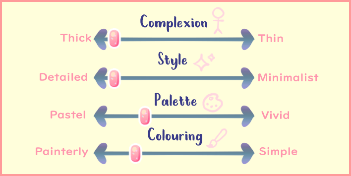 치비 스타일을 위해서는 다음 4가지 범주에 대해 결정해야 합니다: