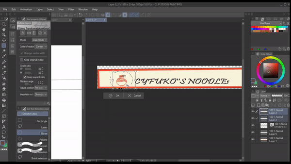 가게를 위해 배너를 만드는 것부터 시작하고 싶습니다. 이를 위해 새 레이어를 만들고 배너 윤곽선을 따라 그리고 파일 오브젝트로 변환했습니다. 이제 “파일 오브젝트 편집” 아래의 “상태”에는 4가지 옵션이 있는데, 이것들은 일종의 단축키와 같습니다.