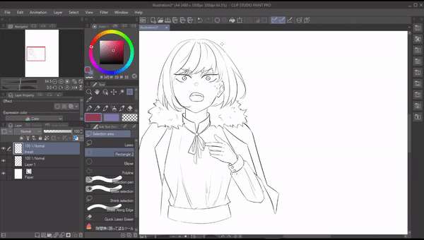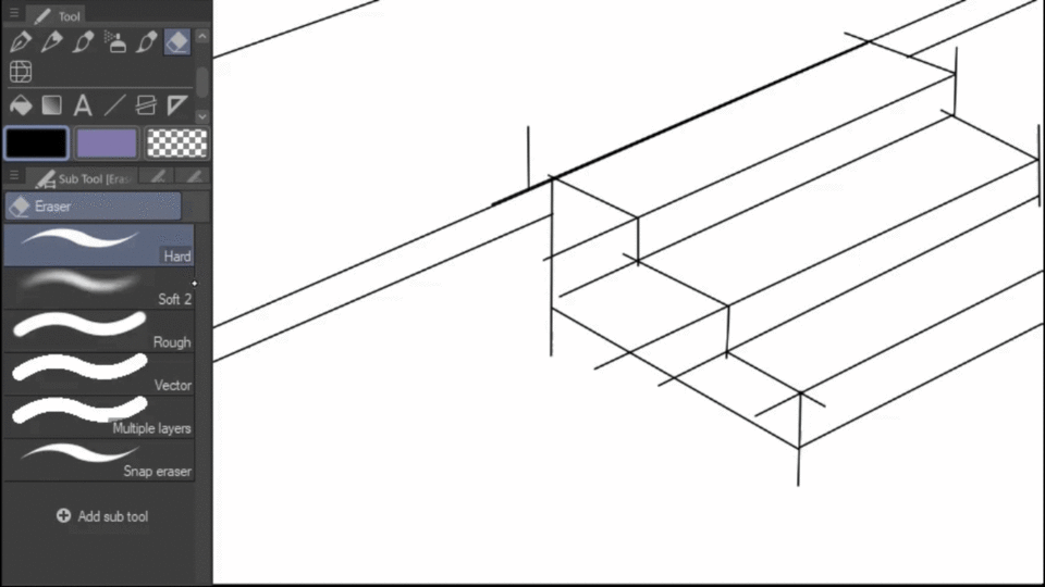 벡터 레이어 사용의 주요 이점 중 하나는 지우개입니다. 클립 스튜디오 페인트에는 벡터 레이어에서만 사용할 수 있는 "벡터 지우개"라는 특별한 지우개가 있습니다.