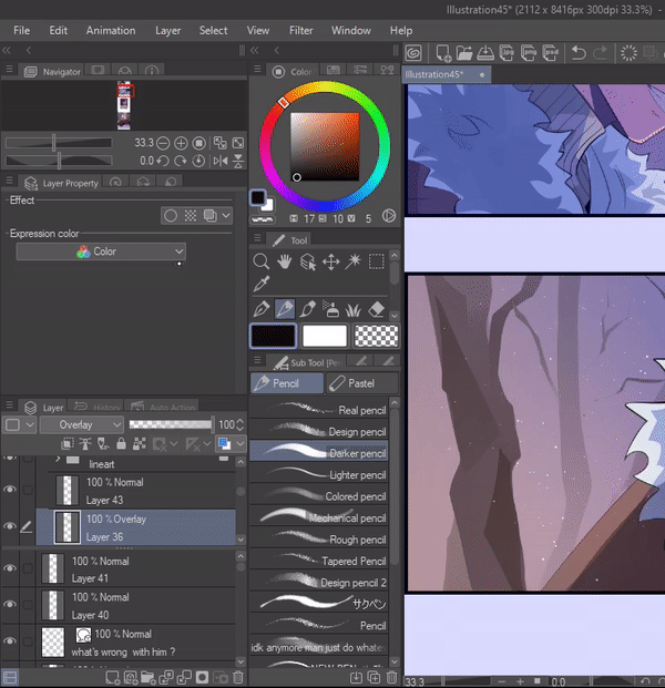 이것은 제가 창작에 사용하는 주요 레이어와 기능입니다. 이 후에 몇 가지 세부 사항을 추가하고 말풍선으로 마무리할 것입니다.