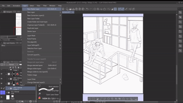 먼저 선화 폴더 아래에 새로운 래스터 레이어를 만듭니다.