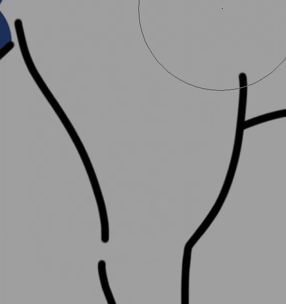 다만, 실제 색상, 즉 >현재< 브러시 크기가 선의 끝에 닿을 때만 그렇습니다. 커서 주변의 원으로 표시되는 브러시의 >최대< 크기는 여기서는 관련이 없습니다.