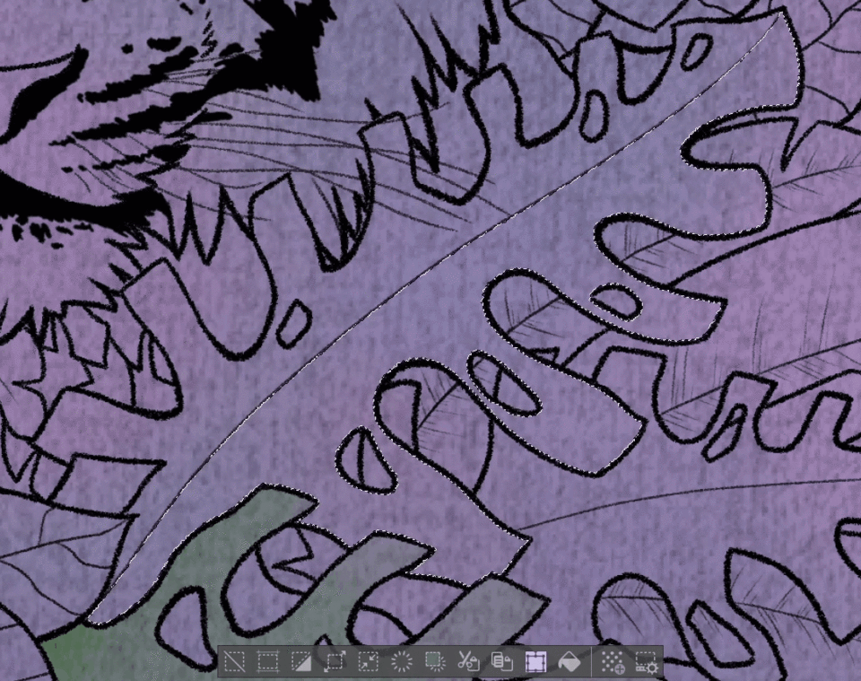 선 레이어는 참조 레이어로 설정되어 있으므로, 선들은 위의 시연에서 캔버스 경계와 똑같이 취급됩니다.