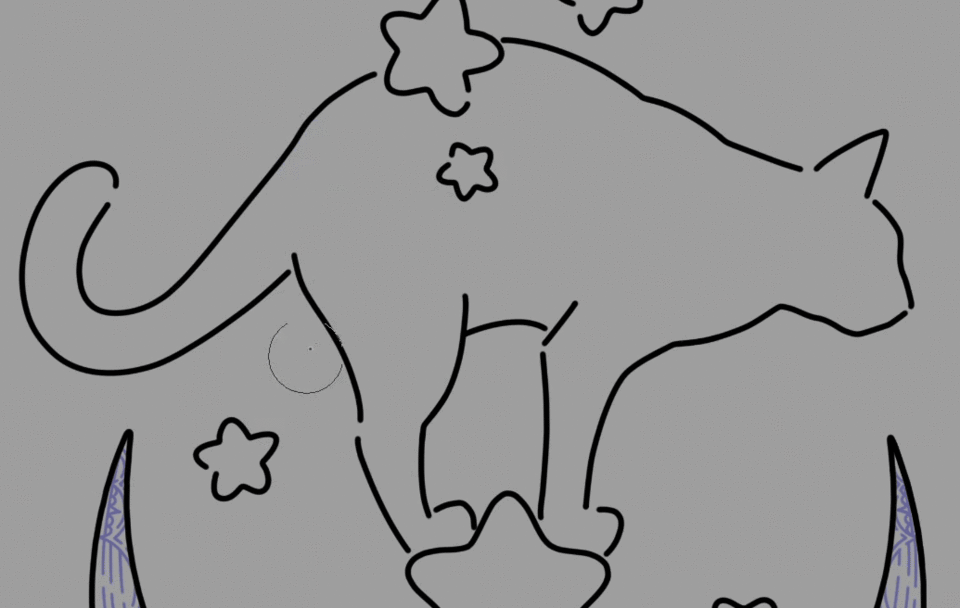 여기 고양이 그림이 있습니다. 벡터 레이어에 그려진 선만 있습니다.