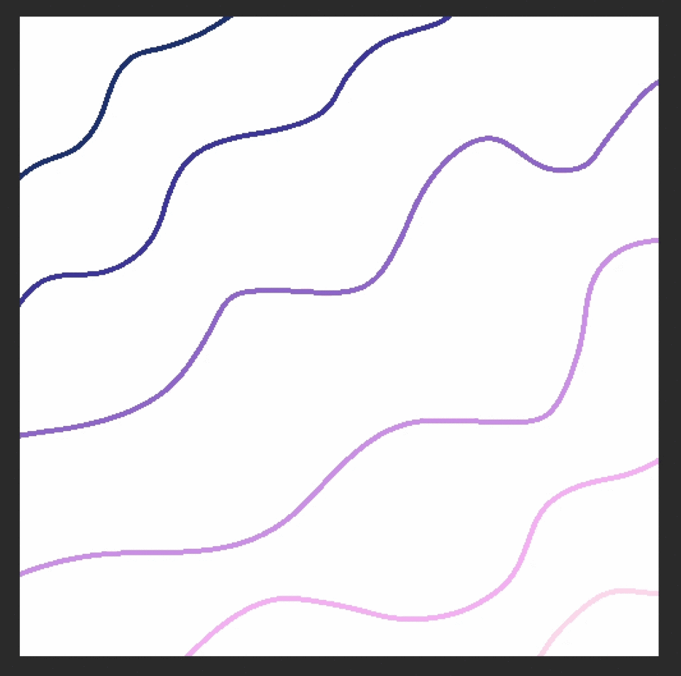 시연을 위해 저는 캔버스 전체에 여러 가지 색상으로 물결 모양 선 몇 개를 그렸습니다. 이 선들은 우리가 칠할 그라데이션의 경계가 될 것입니다.