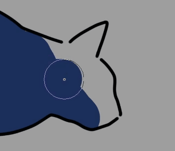 선으로 둘러싸인 영역을 단 하나의 색상으로 채우고 싶다면, 그 안에 작은 점을 그리는 것으로 충분합니다. 그러면 윤곽선 채색 도구가 나머지 부분을 그 하나의 색상으로 채울 것입니다. 저는 예를 들어 눈에 그렇게 했습니다.