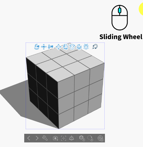 ↑ 아무것도 누르지 않은 채 마우스를 캔버스 위로 이동하여 마우스 휠(스크롤)을 스크롤하면 모델을 볼 때의 원근감을 조절할 수 있습니다.