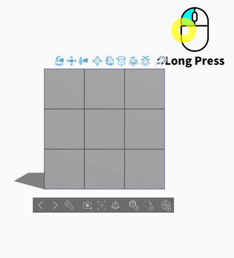 캔버스에서 볼 수 있는 3D 프리미티브의 시점을 조절합니다.즉, 카메라를 조절합니다.주로 상단 왼쪽의 세 가지 버튼을 사용하게 될 것입니다.