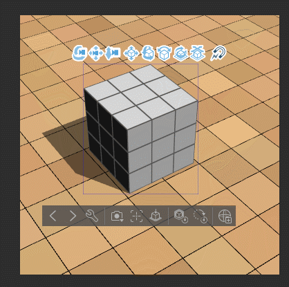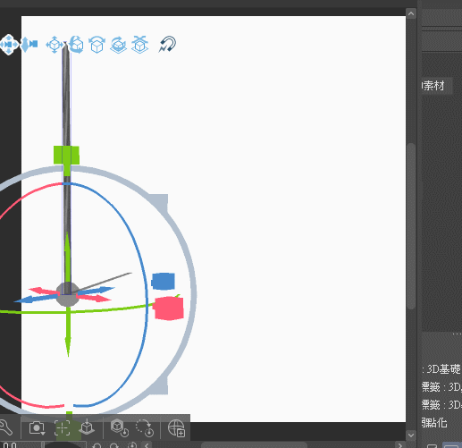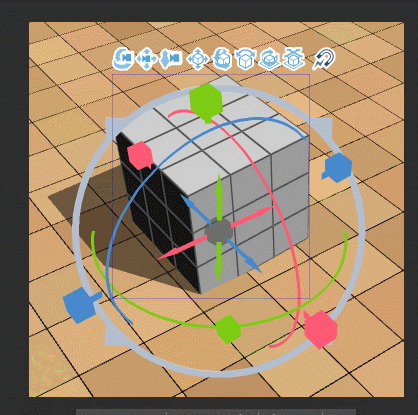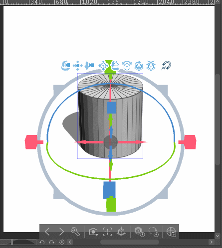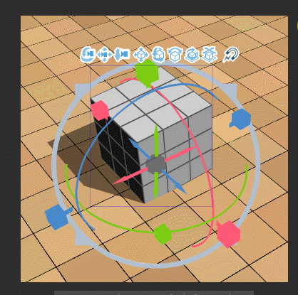 ↑ 바깥쪽의 색깔 있는 원은 3D 프리미티브를 회전할 수 있습니다.