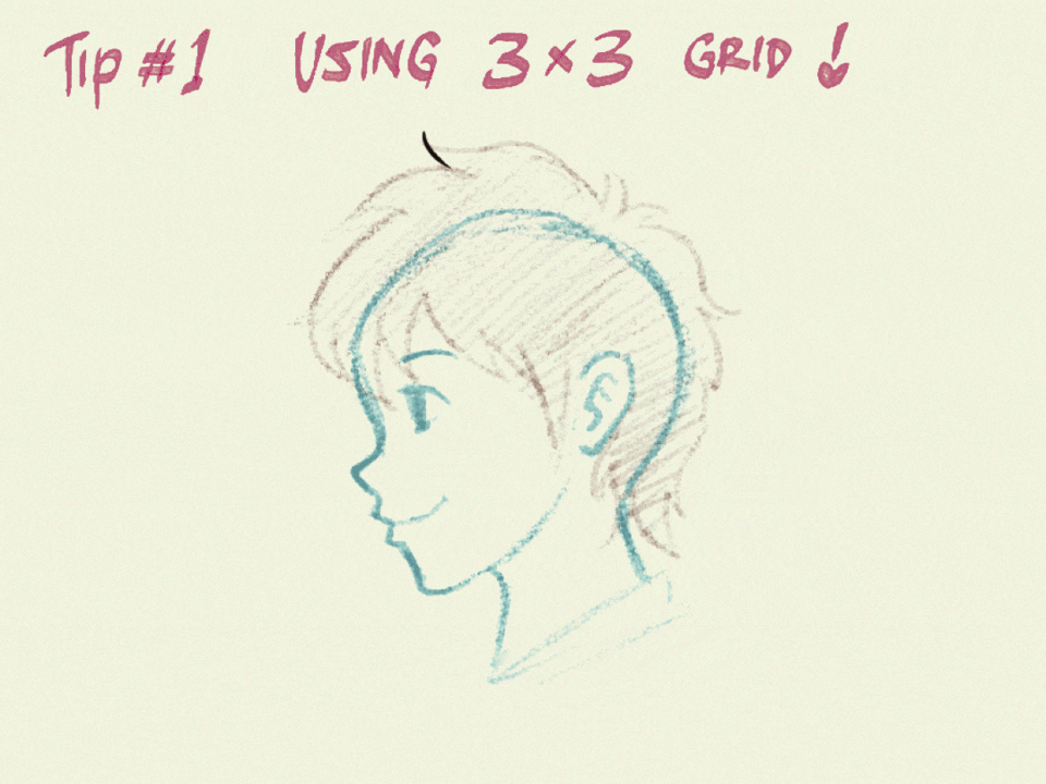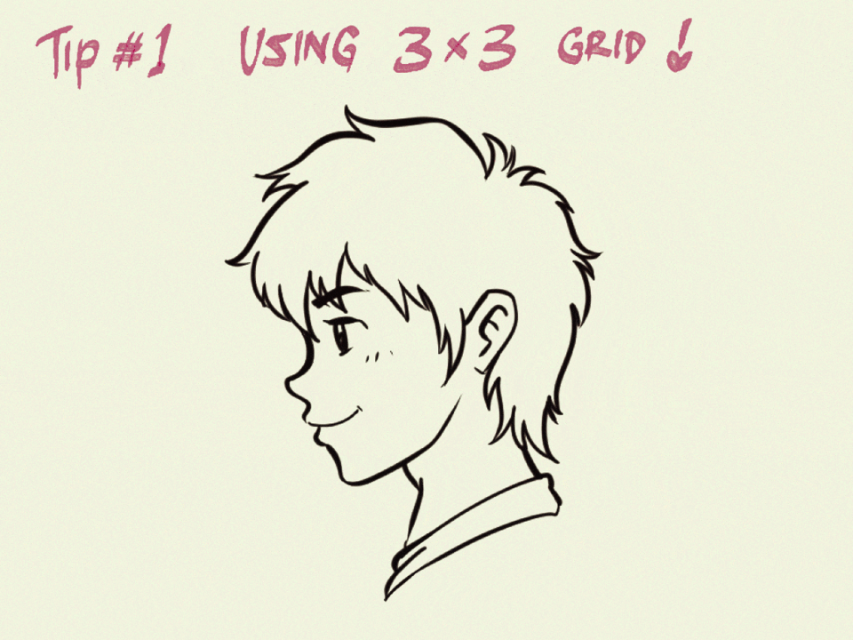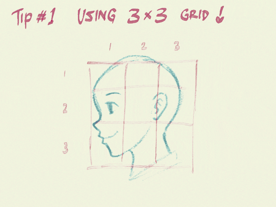 3x3 격자는 프로필 캐릭터를 쉽게 만들기 위해 알아야 할 필수적인 것입니다. 격자를 틱택토 게임처럼 상상해 보세요! 저는 자를 사용하지 않으니, 유연하게 작업하세요.