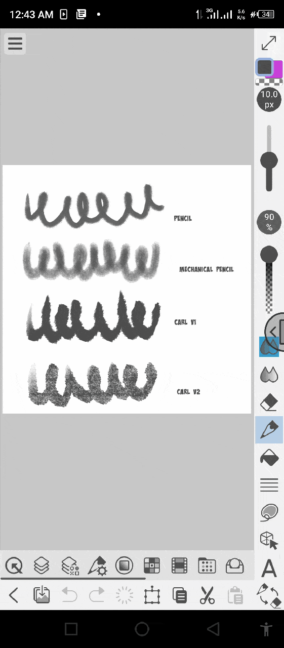 캔버스에 있을 때, '연필(PENCIL)' 또는 '샤프 연필(MECHANICAL PENCIL)' 보조 도구 중 하나를 선택합니다. 저는 지금 연필을 사용하여 제 스타일에 맞게 연필 보조 도구를 조정하는 방법을 보여드리겠습니다.