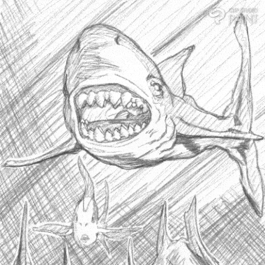 예를 들어, 인물을 제스처와 함께 대략적으로 그린 후(물고기 떼를 쫓는 상어).