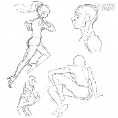 우리는 시각 매체에서 작업하므로, 가장 좋은 방법은 제스처 드로잉의 예시를 살펴보는 것입니다: