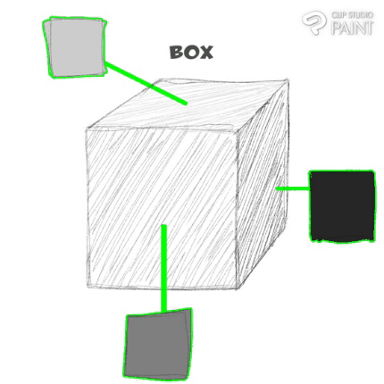 이 색상 그레이드들이 개체 [상자 형태]에 지금의 형태를 부여하는 것입니다.