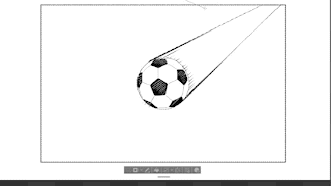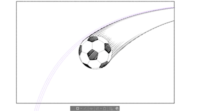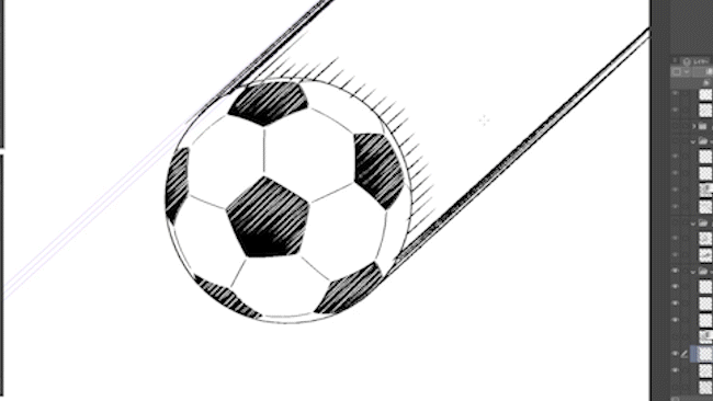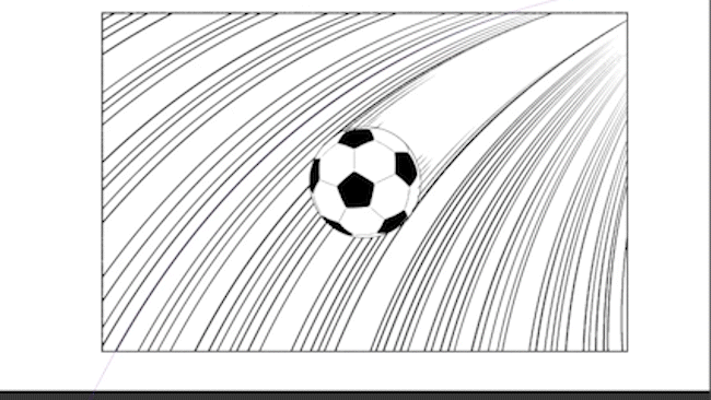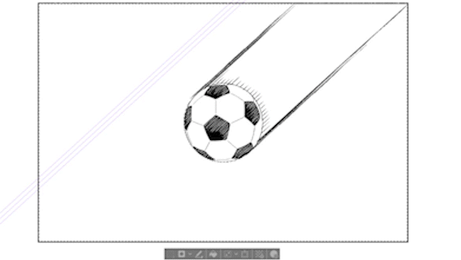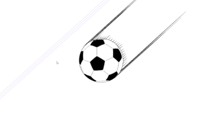 그럼 만화를 그릴 때, 어떤 경우에 어떤 특수 자를 어떻게 사용하는지, 이 축구공에 움직임을 주는 느낌으로 몇 가지 예시를 제시하면서 전반적으로 소개하겠습니다.